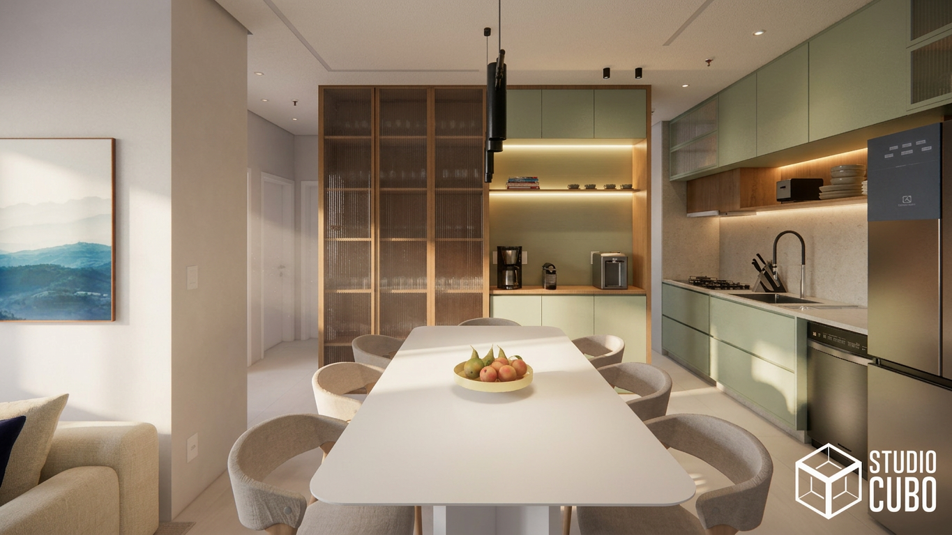 Quando fomos convidados a reformar este apartamento tínhamos o objetivo de aumentar a área de convívio social. Em uma casa preparada para um jovem casal, área de jantar, sala de TV e cozinha são essenciais para curtir a família, mantendo o relacionamento saudável com noites de filmes sossegadas e jantares prazerosos. A partir de pequenas intervenções conseguimos ampliar esses espaços e tornar esse apartamento contemporâneo mais funcional. Apartamentos contemporâneos veem em uma crescente no mercado brasileiro, sendo sinônimo de linhas limpas, integração de ambientes, cores neutras, materiais naturais e tecnologia a favor do bem-estar.