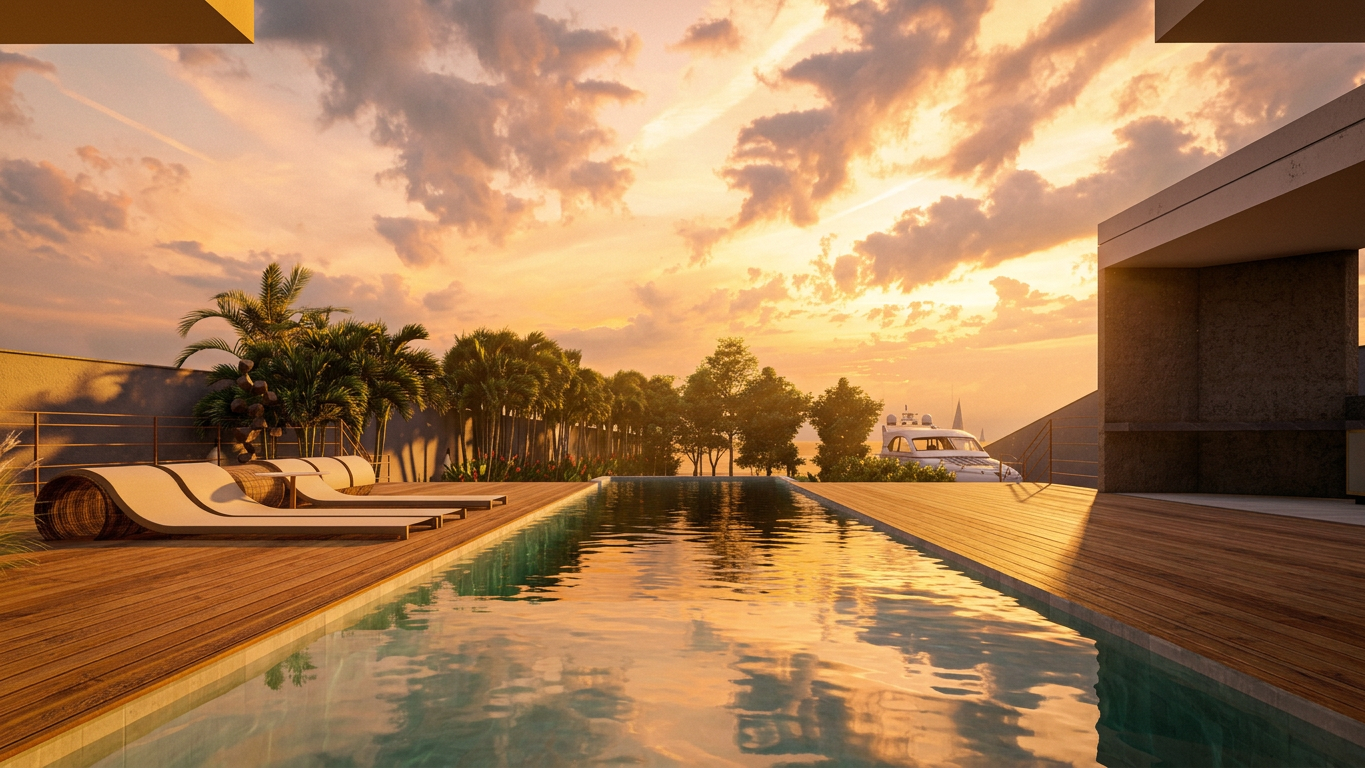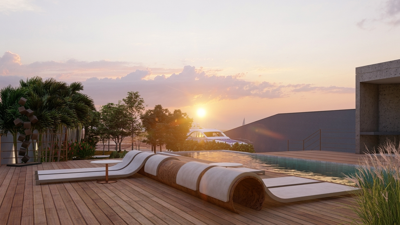 Da chegada ao heliponto até o desembarque na orla, as espécies emolduram o exuberante pôr do sol de encontro ao mar: um espetáculo exclusivo em um universo estritamente particular!