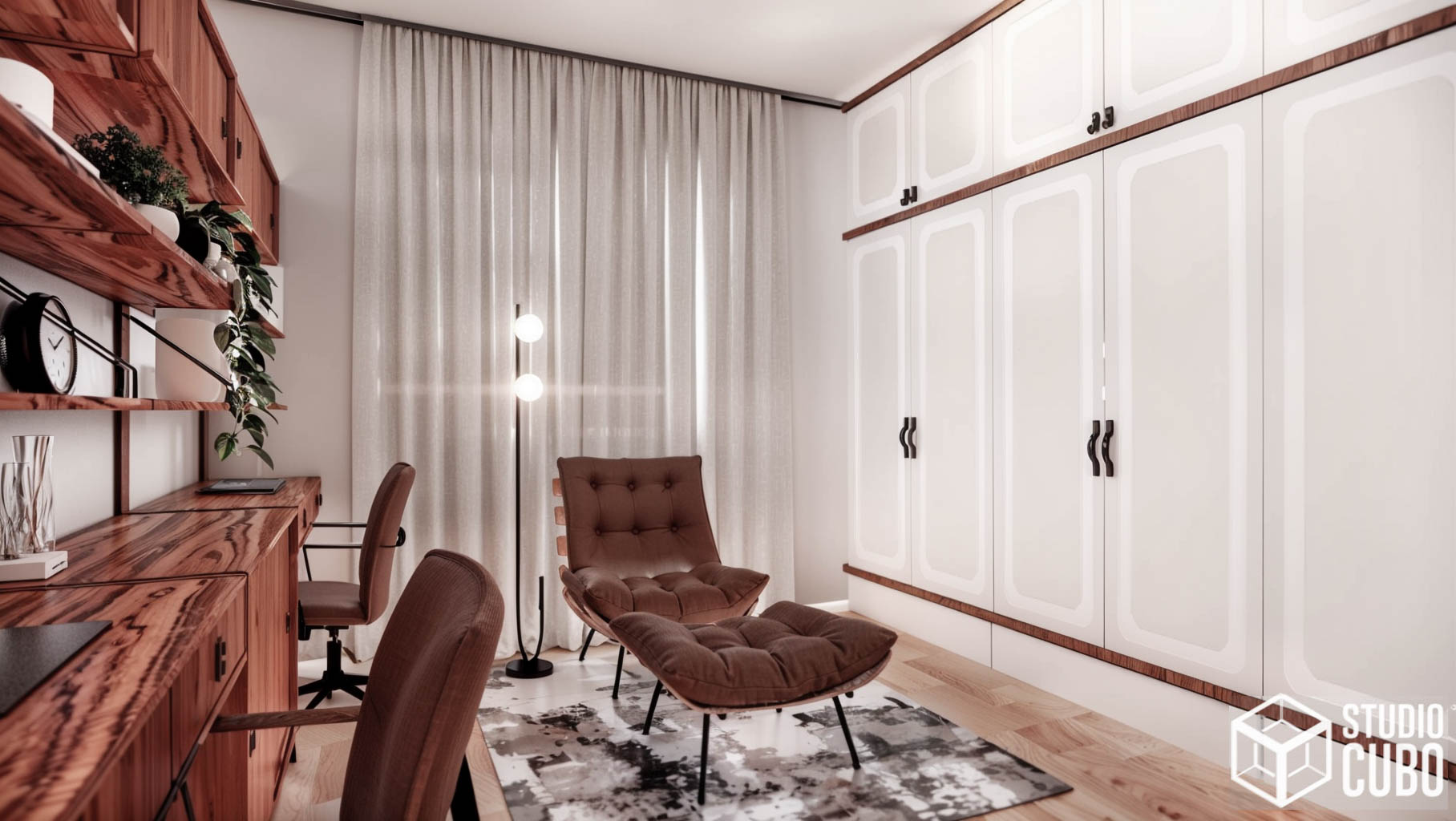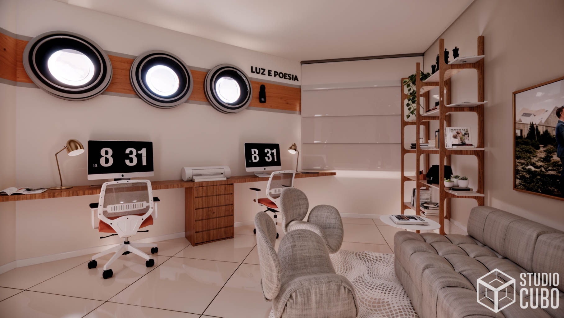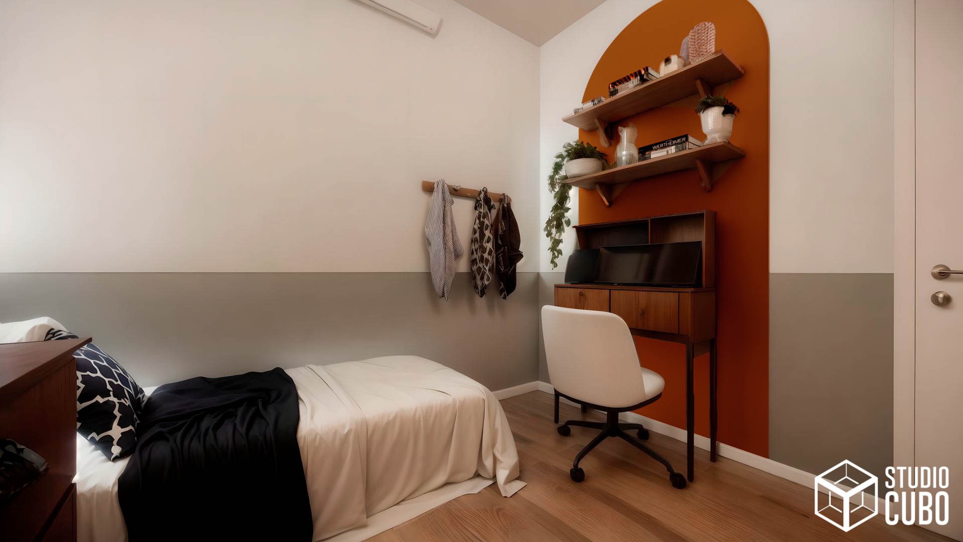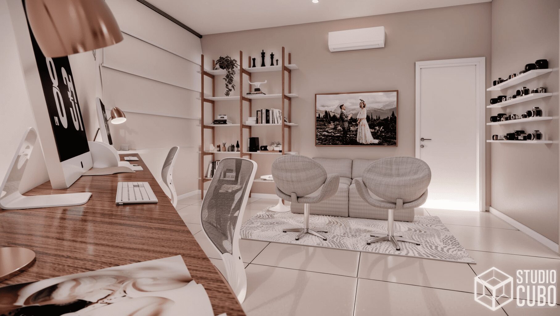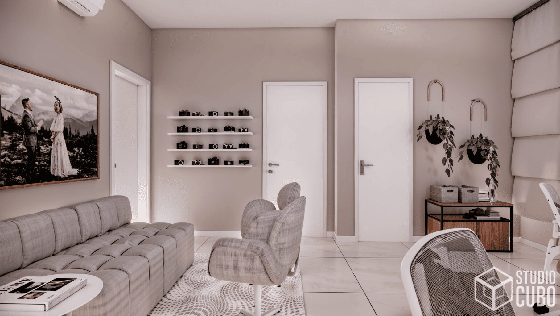 Este projeto foi concebido para unificar dois apartamentos e solidificar o advento do home office no lar desta jovem família em São João Del Rei, MG.