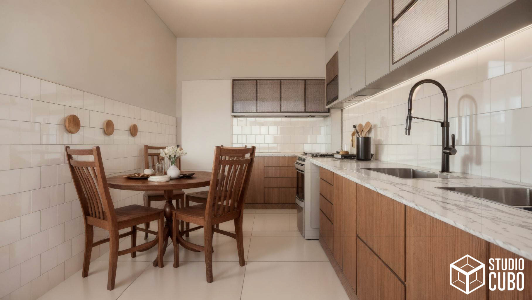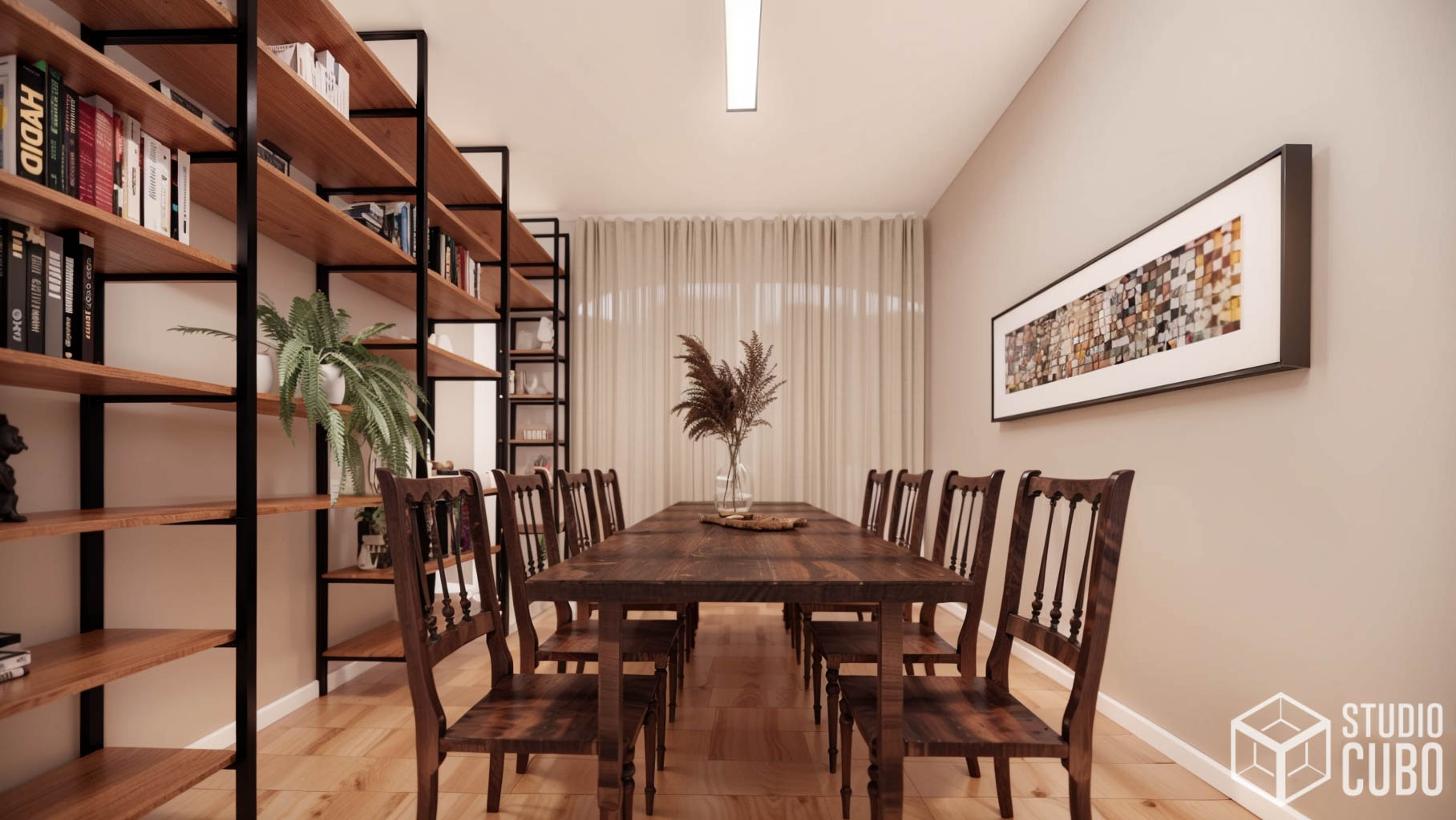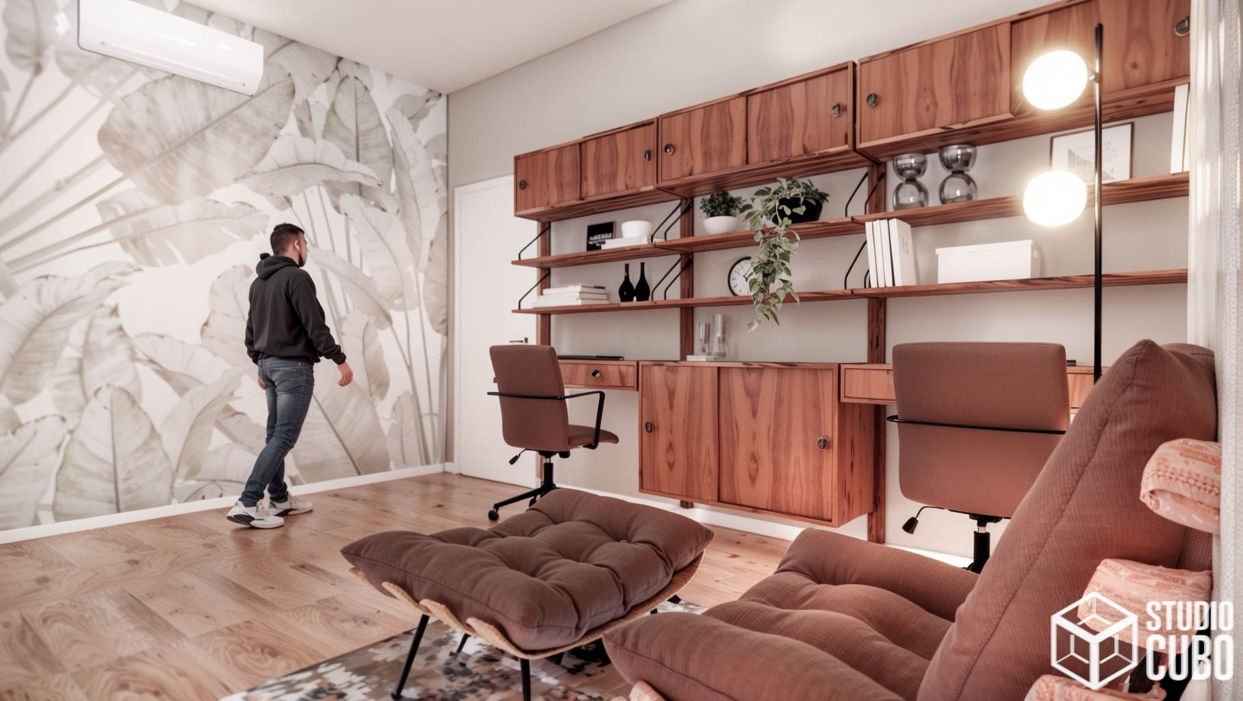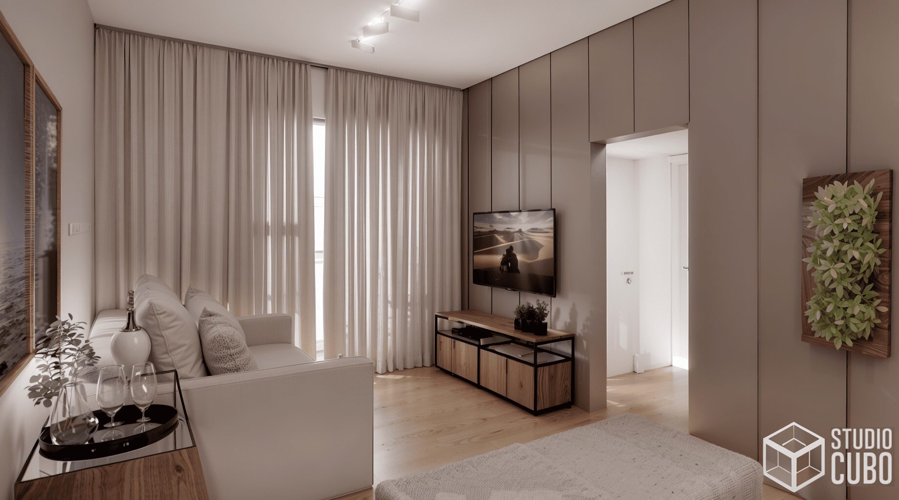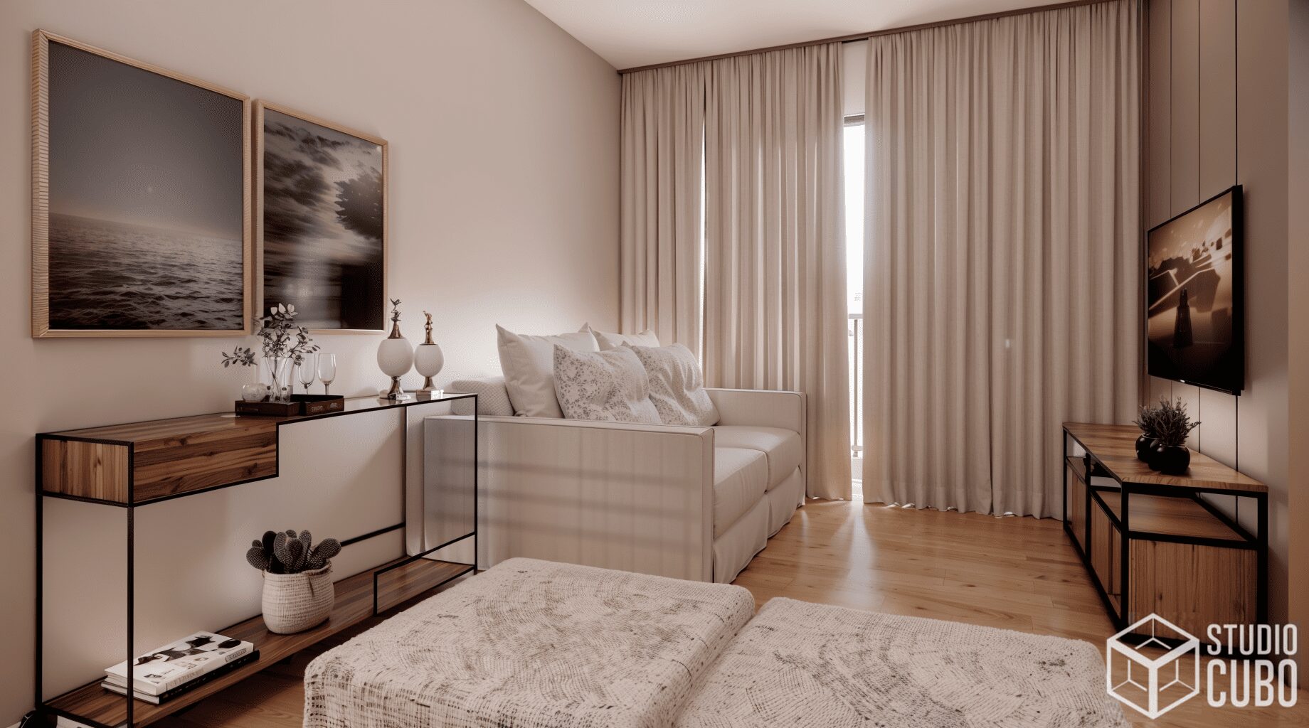 Este projeto foi concebido para unificar dois apartamentos e solidificar o advento do home office no lar desta jovem família em São João Del Rei, MG.