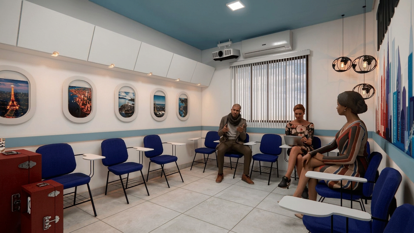 A escola Expert se empenha para entregar ao aluno uma imersão completa para que o aprendizado seja excepcional. Foi pensando nisso que projetamos as salas “Talk and travel” e “Infanto-juvenil”.