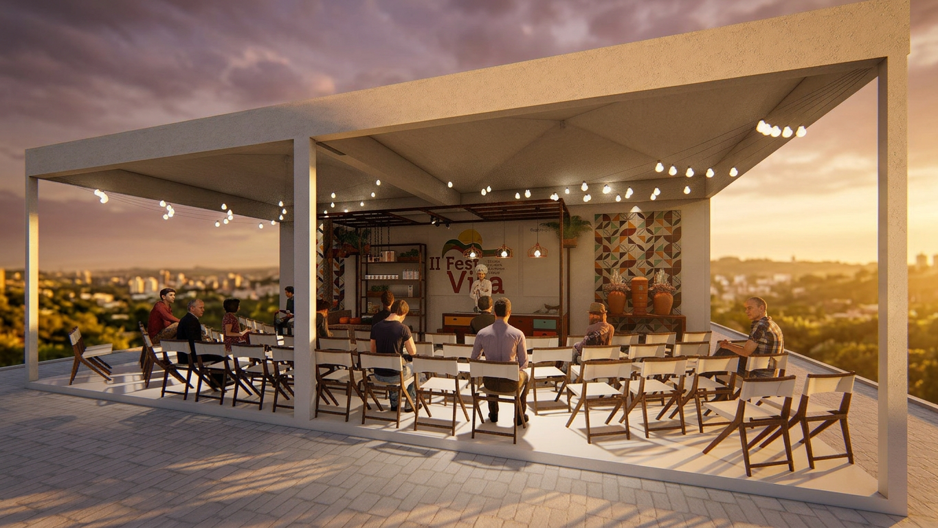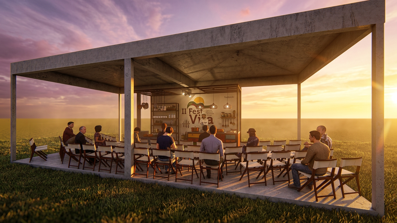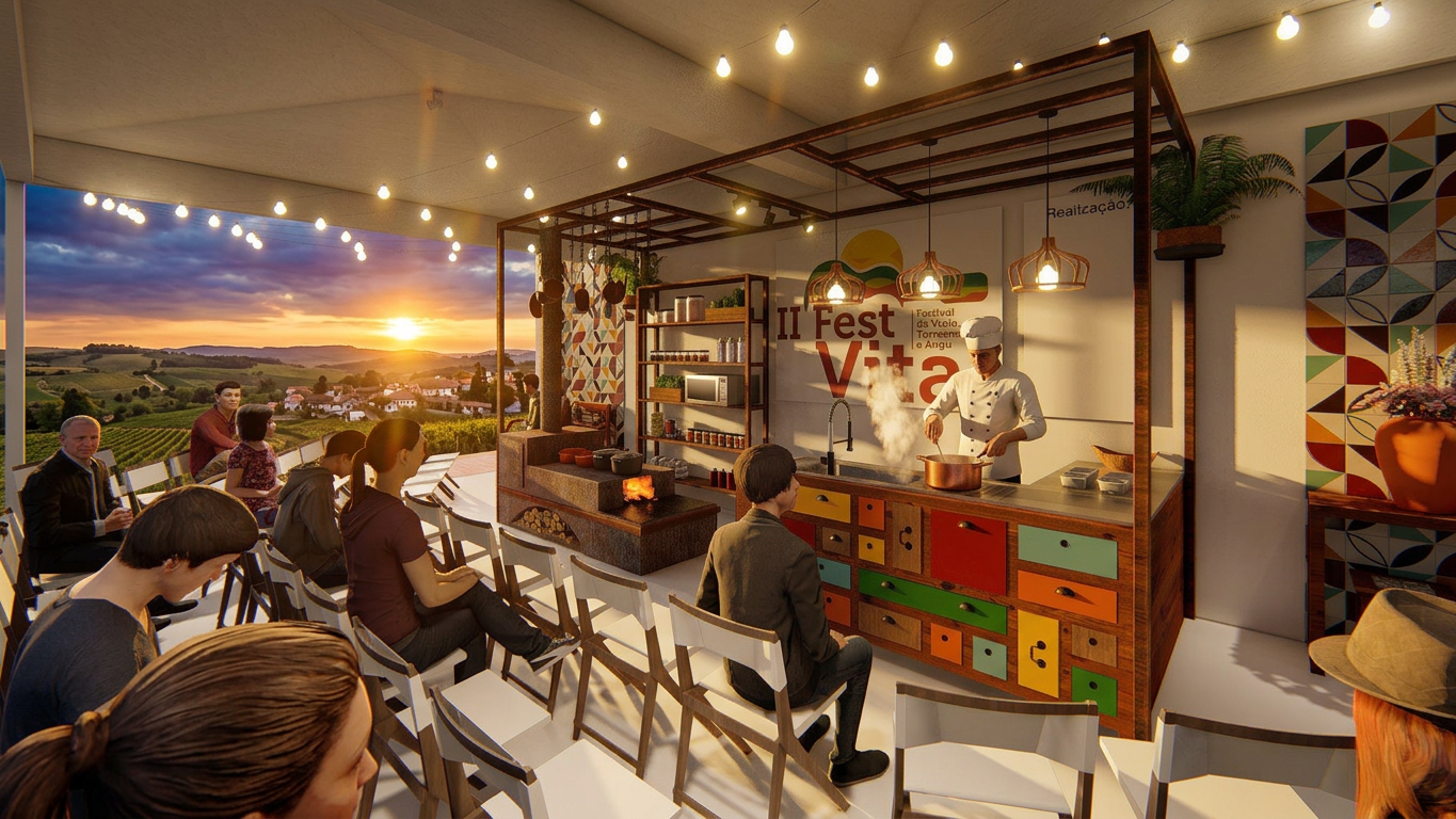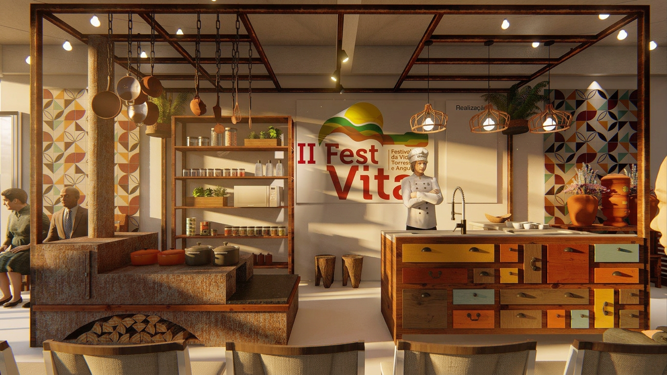 Projeto cenográfico desenvolvido em 2019 para a Prefeitura Municipal de Santa Cruz de Minas receber o 2º Festival da Viola, Torresmo e Angu (FestVita). O projeto engloba o ponto forte da cidade, que é polo de móveis de demolição e agrega alguns patrimônios da cozinha mineira, como o fogão à lenha, tacho de cobre e colher de pau, criando um cenário vigoroso para a cozinha ao vivo dos Chefes de Cozinha convidados.