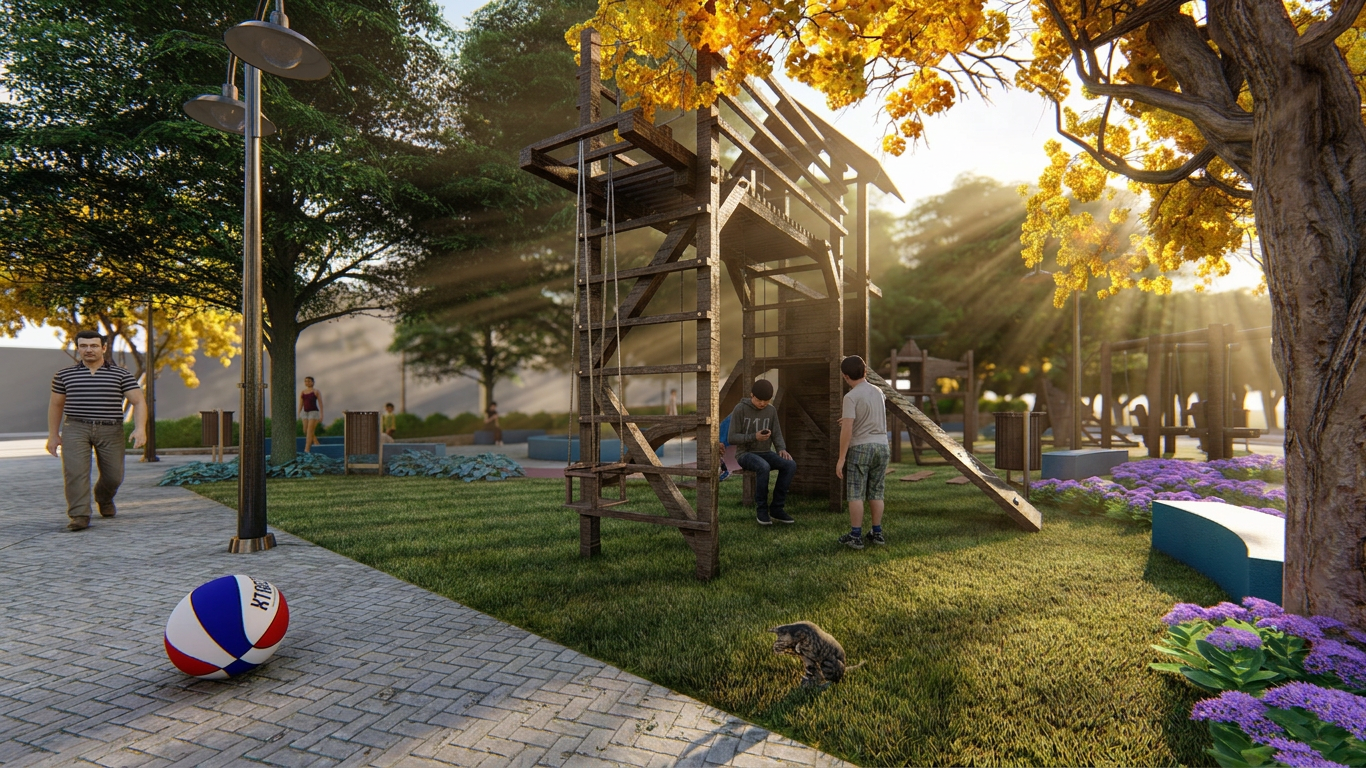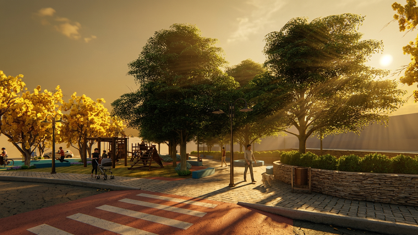 Qualificação do espaço urbano, promoção da qualidade de vida e acesso aos direitos sociais: este foi o tripé conceitual da Praça dos Ipês em Santa Cruz de Minas, MG.
