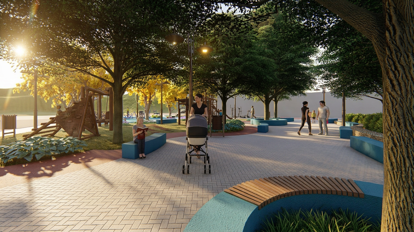 Projetada para ser um elemento articulador territorial, está conectada à Creche Municipal (em construção) e a diferentes bairros da cidade. Equipada com parque infantil, academia da cidade, iluminação e paisagismo marcantes, traduz sociabilidade ao espaço público.