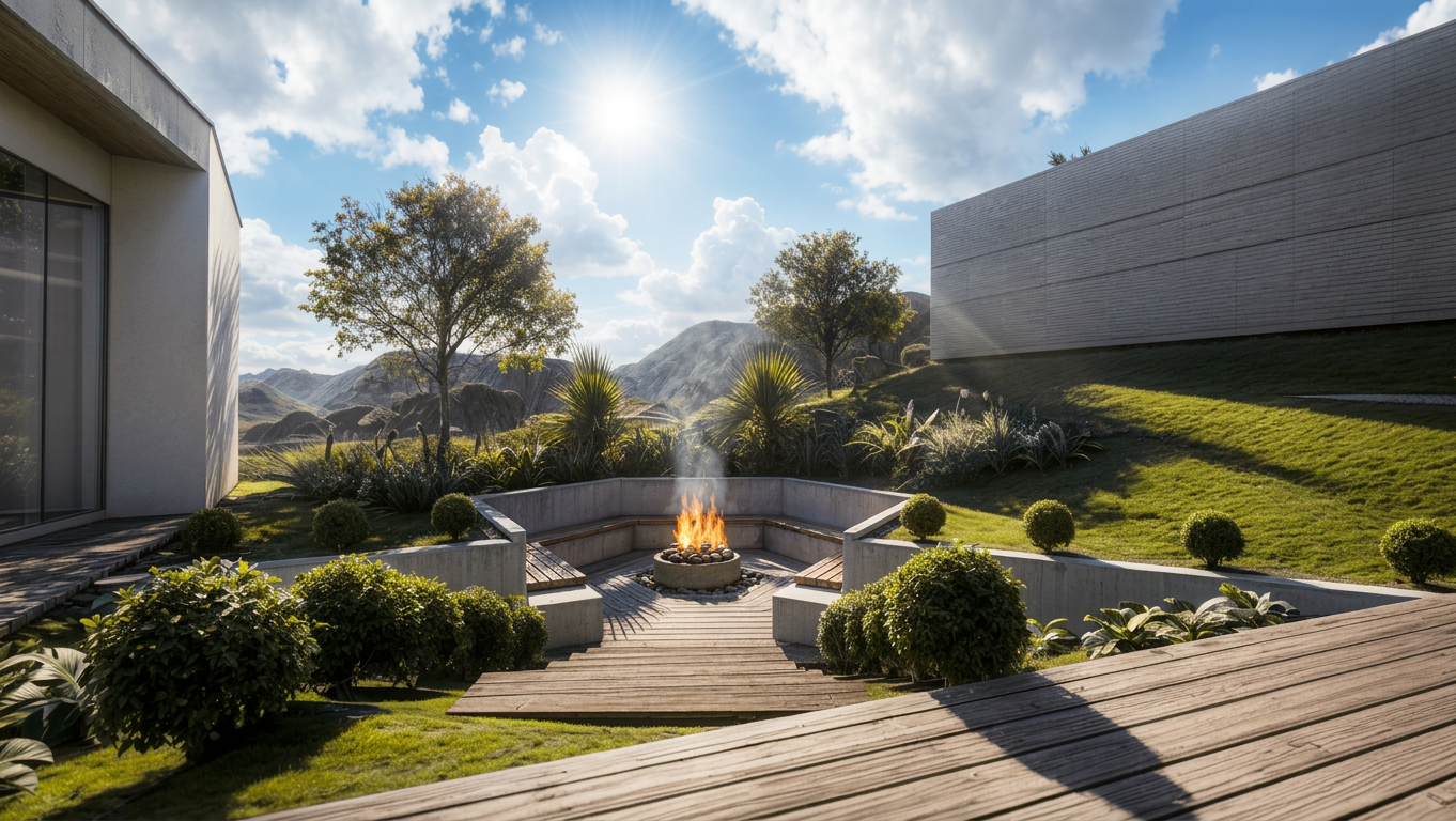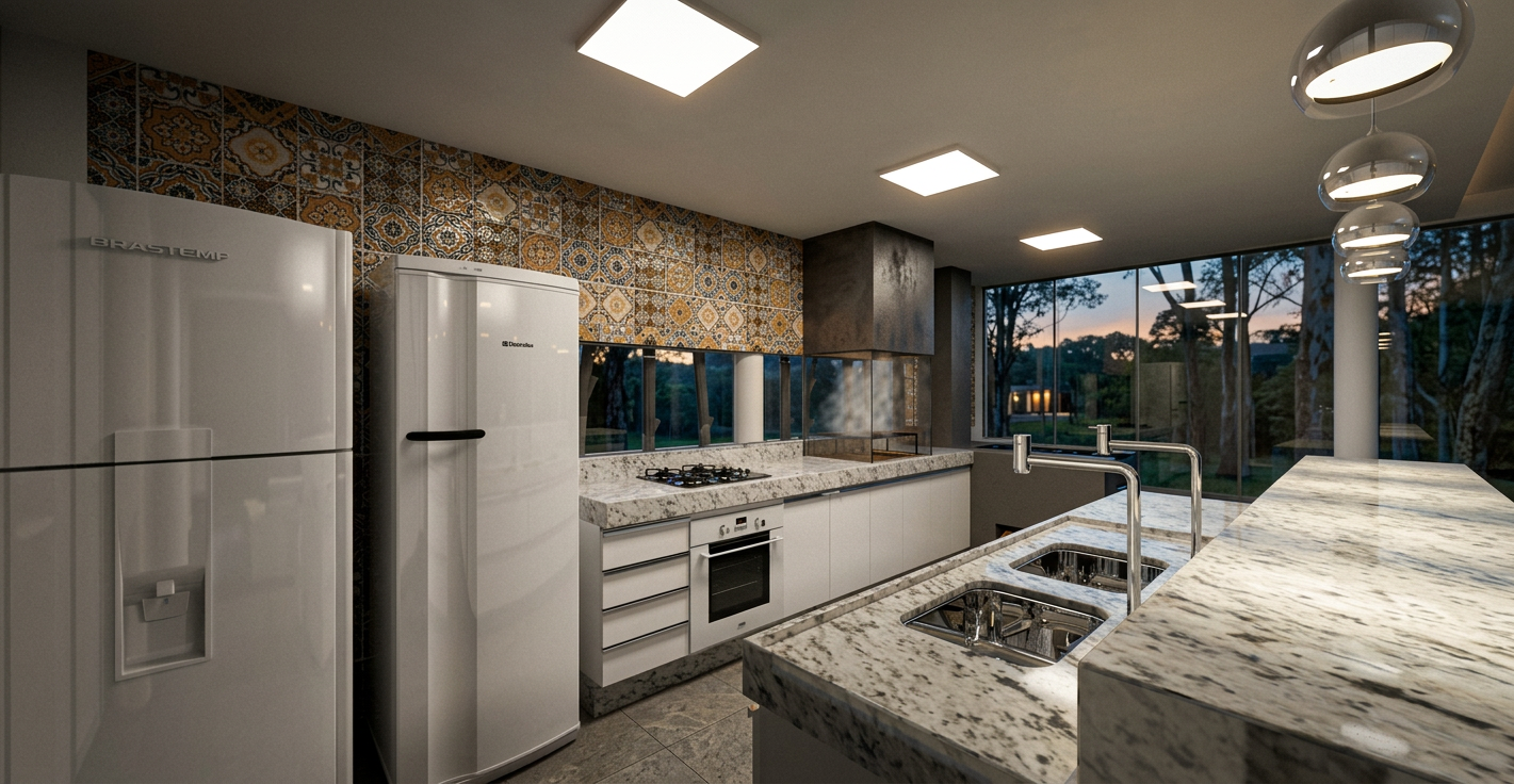 Fogueira é como um ímã de gente no inverno: é só acender para todo mundo se acomodar ao redor dela! No entanto, para facilitar a limpeza e a funcionalidade, optamos por uma solução prática e aconchegante: reservar um espaço do jardim para um fogo de chão. Construída em alvenaria de combustão à lenha, é a principal aposta de atração para os dias frios ao ar livre.