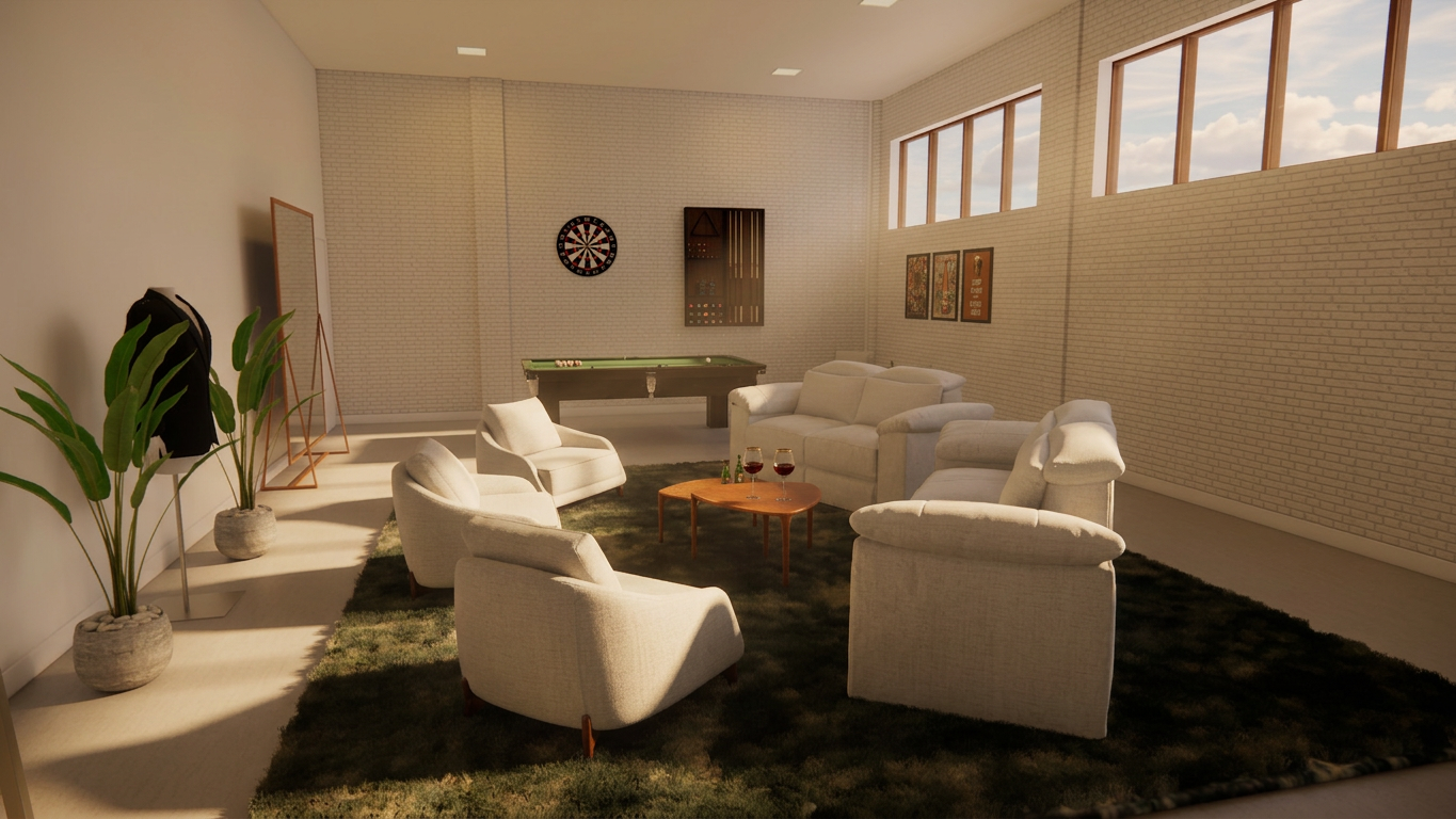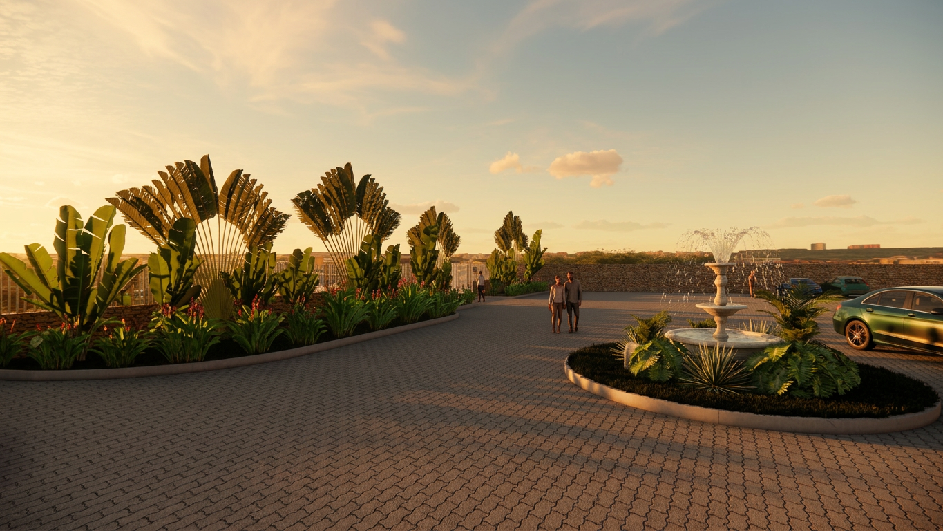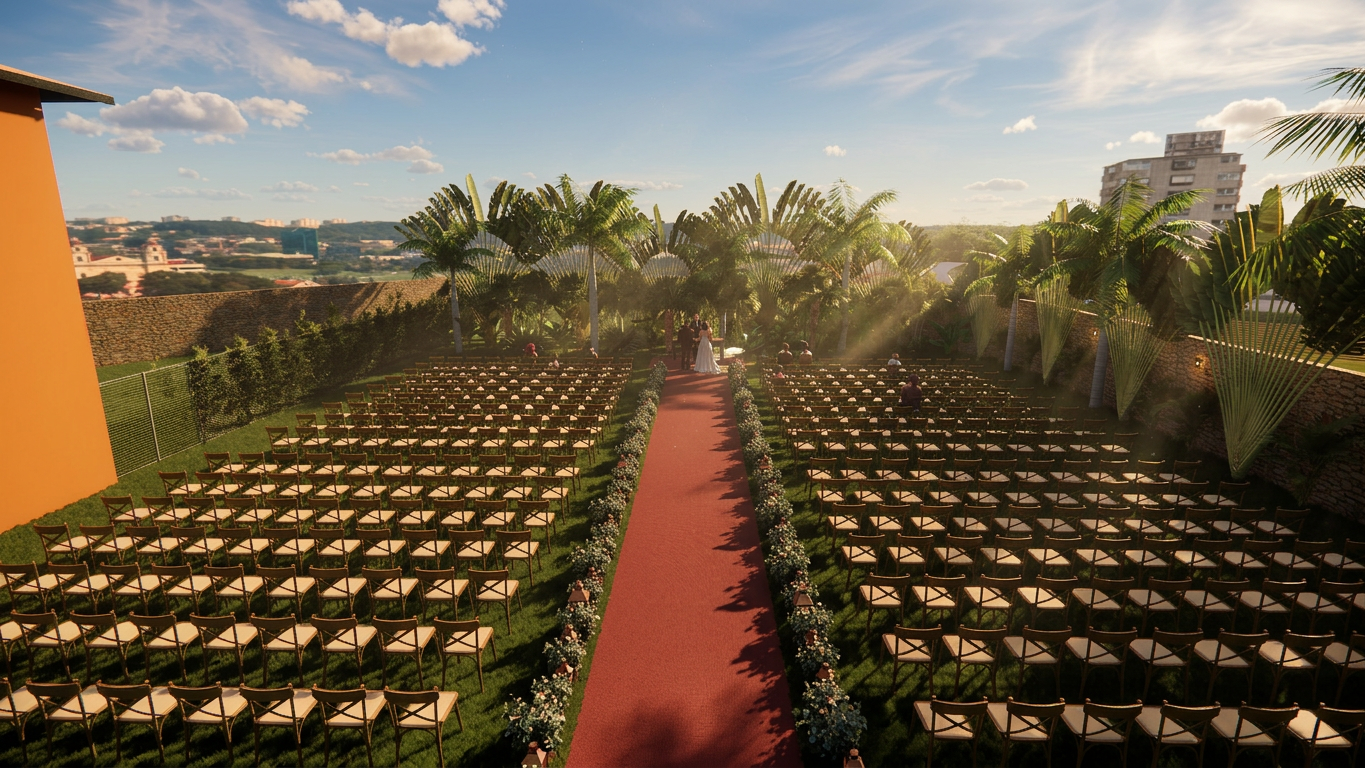 O projeto paisagístico Lagos de Minas contempla estudo de novo fluxo dos acessos de veículo e pedestres no entorno do Salão Imperial, estabelece o novo escritório empresarial, novas salas para dia de noivo e noiva bem como cria uma área de cerimônia externa com uma exuberante vegetação tropical como plano de fundo.