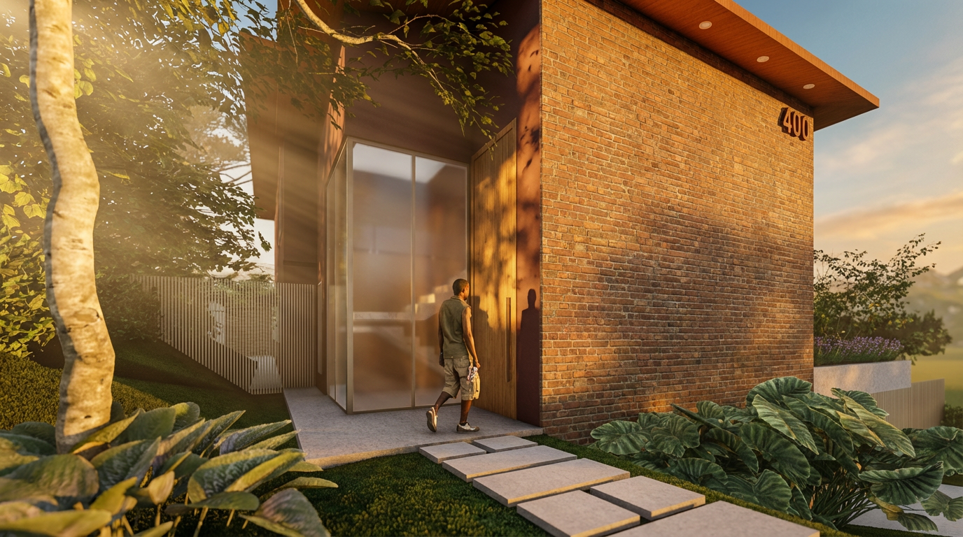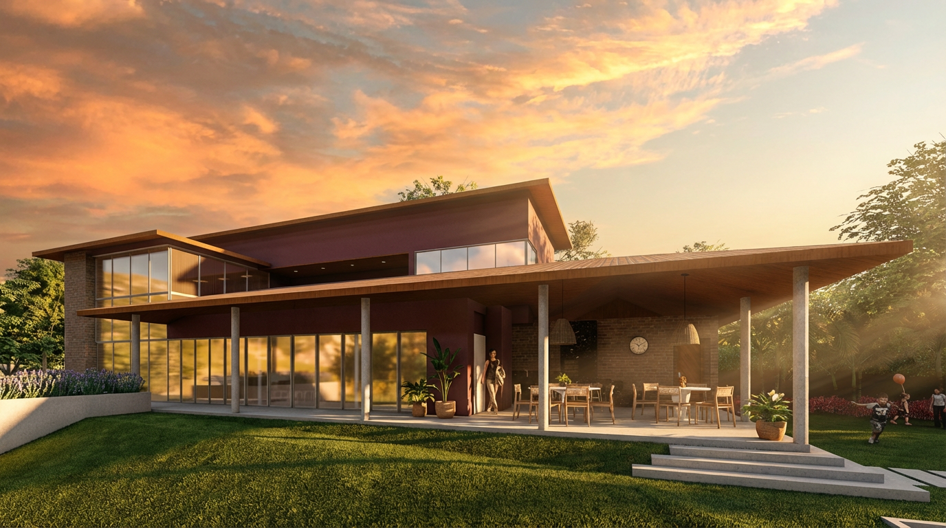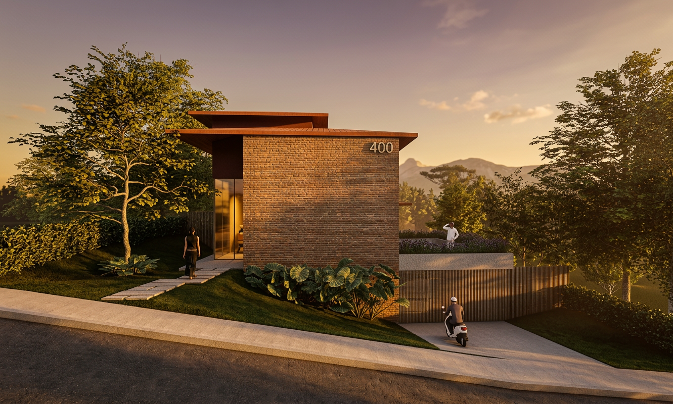O projeto conta com 3 dormitórios + suíte master e integração total dos ambientes sociais com pé direito duplo.
