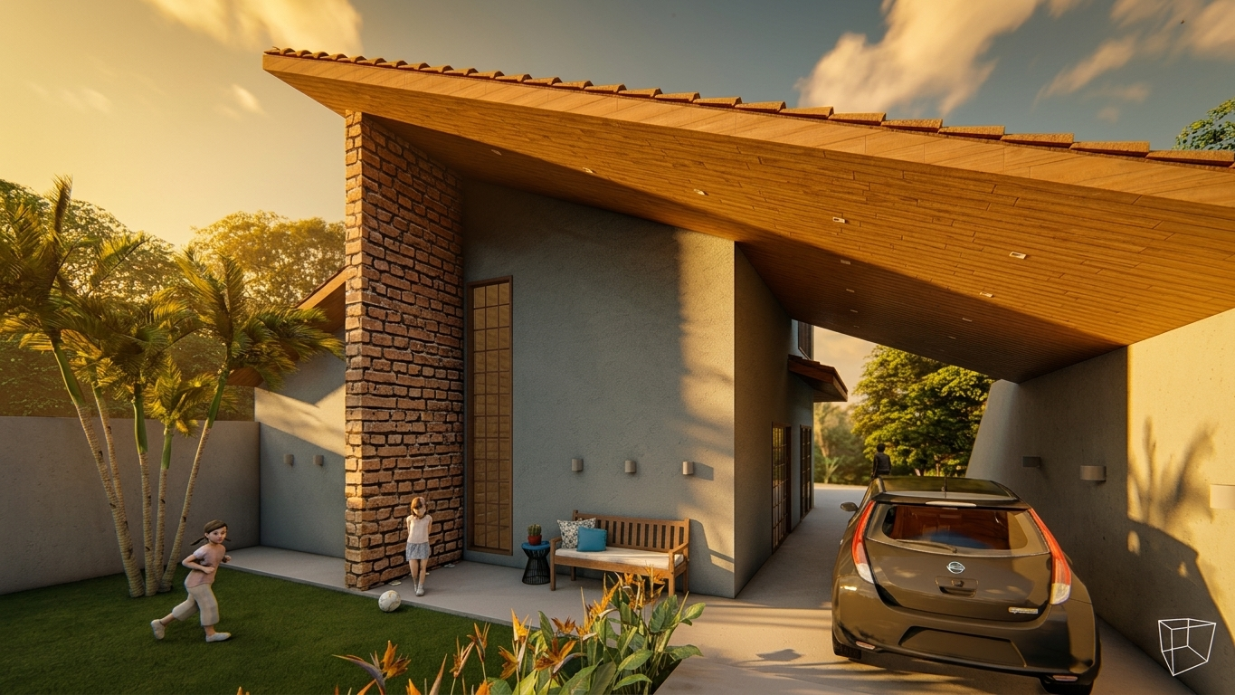Residência unifamiliar com forte demarcação dos telhados aparentes. O apelo estético foi unificar aspetos coloniais com contemporaneidade. A janela em fita vertical bem como o uso de materiais aparentes como tijolo cerâmico garantem autenticidade à esta casa.